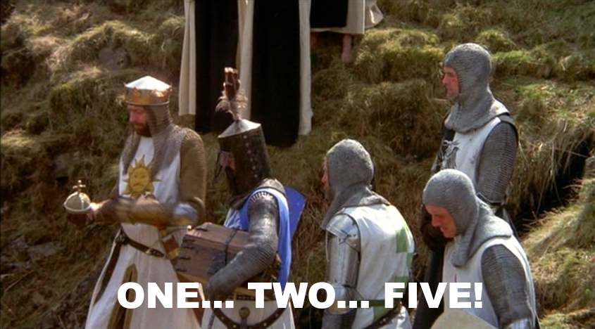 Perhaps it was all the times I’d watched Monty Python and the Holy Grail in my youth or perhaps it was the sheer impossibility of decreasing my long To Do list to just 3 items, but I ended up deciding 5 was a more reasonable number for me.